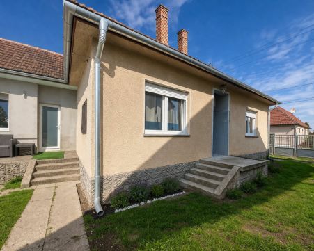 A 70-es években épült, három hálószobás, klimatizált kádár kocka folyamatos felújításon esett át az elmúlt években (nyílászáró csere, elektromos hálózat, fűtés stb) de a korszerűsítés befejezése már a leendő tulajdonosra vár. Az utólag hozzá épített épületrészben került kialakításra a konyha-étkező, a kamra és egy fürdőszoba.