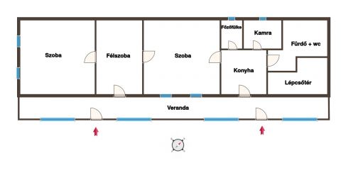 Nyílászárók: fa, jó állapot, 2 rétegű üveg