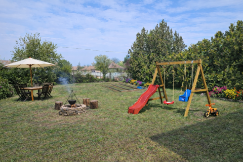 A kert mérete lehetőséget ad több funkció kialakítására is: játszórész, veteményes vagy akár egy hangulatos pihenőkert is könnyedén megvalósítható.