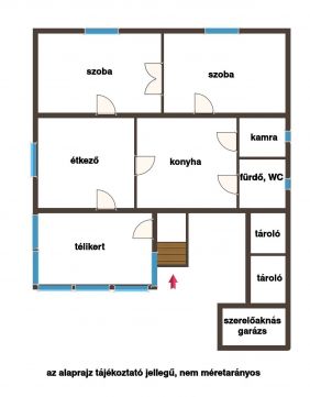 A lakóépülethez 2 tárolót, és szerelőaknás garázst magába foglaló melléképület kapcsolódik, mely erősen felújítandó, vagy bontandó