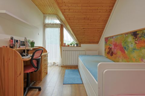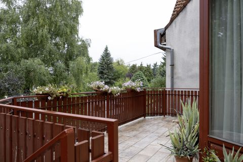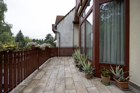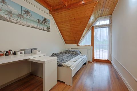A házat 1990-ben építették, 2014- ben felújították.A felújítás során kicserélték a víz- és villanyvezetékeket, ajtókat ( lucfenyő ), ablakokat melyek szintén borovi fenyőből készült, kétrétegű szigeteléssel.A burkolatokat is kicserélték, felújították a padlófűtést, a ház kapott 15 cm-es kőzetgyapot szigetelést, a padláson pedig 20 cm-es ökológiai habosított papír szigetelést.A hely:Kiváló közlekedés, 10 perc sétára van a 164, 64, 257, 57 buszmegálló ,.Iskolák, rendelők, gyógyszertár, bevásárlóközpont a közelben.