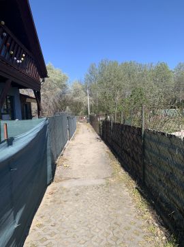 Az utcáról közös bejárón lehet a lakásokhoz jutni, mely mellett, közvetlenül a kerítéstől indulva saját kertrész tartozik a lakáshoz. Területe kb. 220m2.