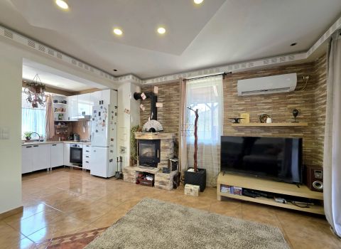 A földszinten közlekedő, mosókonyha, 1 hálószoba, valamint fürdőszoba WC-vel található. A nappali, konyha és étkező egy légtérben helyezkedik el, amely tágas és világos életteret biztosít.