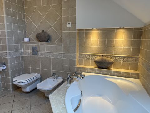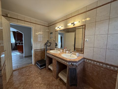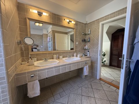 - Tágas fürdőszoba káddal és zuhanyzóval, dupla mosdóval
