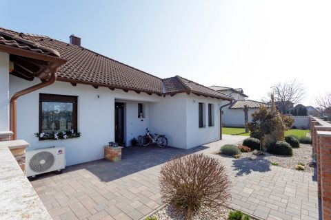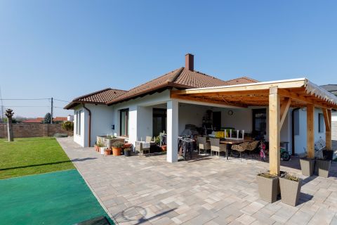 A ház világos, napfényes terekkel rendelkezik, a tágas nappali és a terasz pedig tökéletes helyszínt biztosít pihenésre és családi együttlétekre, miközben a tó közelsége különleges életérzést ad az ingatlannak.