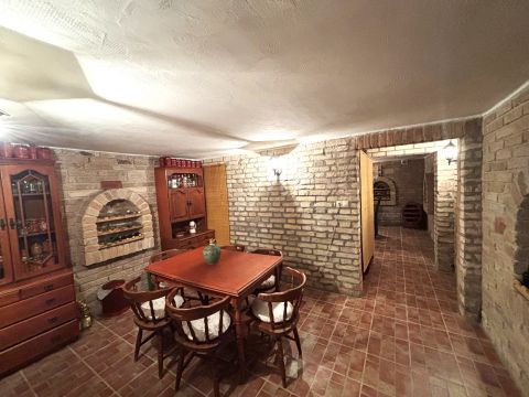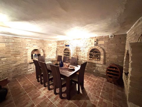 A tégla burkolatú, hangulatos borospince igazi ékköve az ingatlannak baráti esték, borozások és meghitt beszélgetések tökéletes helyszíne.