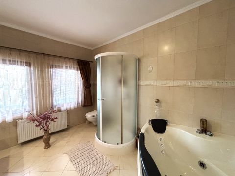 A ház elrendezése kényelmes és élhető: a privát terek jól elkülönülnek, mégis szerves részét képezik az otthon egészének. Az előkészített külön bejáratú apartman tökéletes lehet vendégeknek, idősebb családtagnak vagy akár irodának.