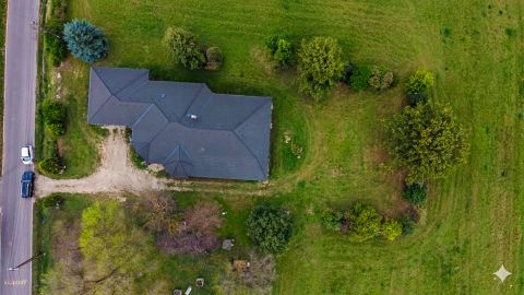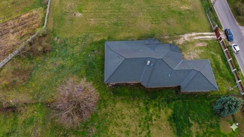 Szerkezet: 38 cm-es Porotherm tégla falazat, vasbeton és fa födémmel, antracit színű betoncserép.