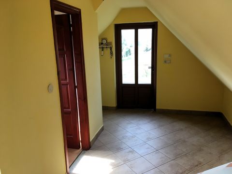 Az ingatlan részét képezi a 2010-ben téglából épített 67 m²-es, 2 szintes ház, melyet cseréptető héjazat fed. A szintenként egy-egy szobával, valamint zuhanyzós fürdő-WC-vel, az alsó, földszinti, parasztgerendás részben kialakított konyhával megépített lakóegység fűtését egy gázkazán biztosítja.