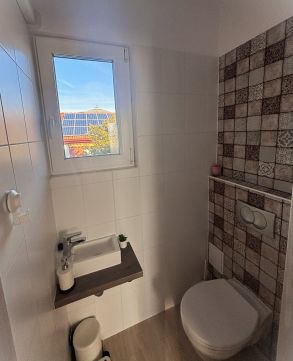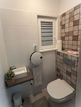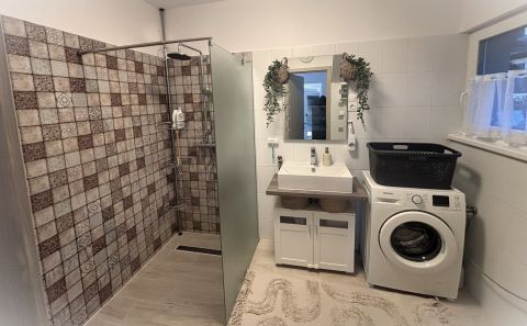 Az elektromos padlófűtés és/vagy 2 db 3,5 kW-os Midea klíma biztosítja az otthon melegét télen-nyáron, illetve a meleg víz ellátásról villanybojler gondoskodik. A bővített 3x32A áramteljesítménynek köszönhetően bőven van tartalék akár elektromos autó töltésére is. 2023-ban a cseréptetőre 5 kw napelem rendszer került (405w-os panelekkel) így 2033-ig szaldó éves elszámolásban termeli az áramot a háztartás számára. Ráadásul mivel 10 kw-os inverter lett beépítve és engedélyeztetve, a rendszer az igényeknek megfelelően, további adminisztráció nélkül bővíthető akár + 10 kw-ig is.