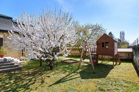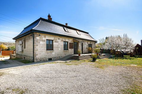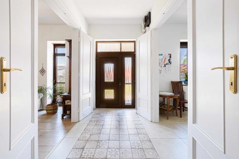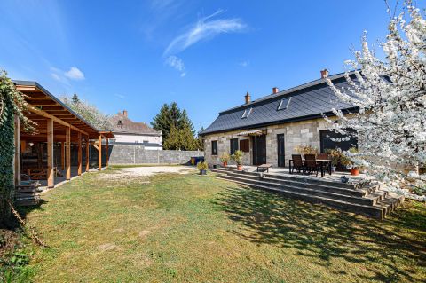 Sóskút központi részén, mégis nyugodt, zöld környezetben kínálunk megvételre egy különleges karakterű, vidéki nagypolgári stílusú családi házat.