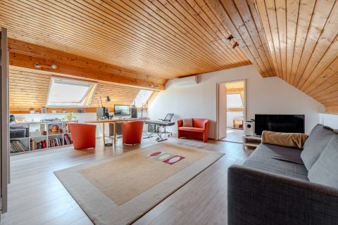 Mivel a ház nagy része déli tájolású, ezért nagyon világos. Rendkívül tágas terek vannak, így a család összes tagja kényelmesen el tud vonulni a saját életterébe.