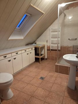 A tetőtérben két hálószoba, egy közlekedő és egy modern fürdőszoba található.