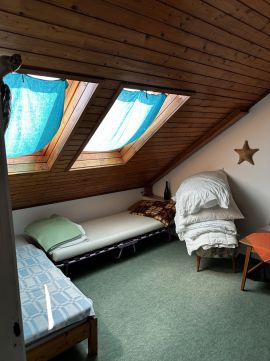 Beépített tetőtér ideális olvasósaroknak, hálónak vagy alkotószobának.