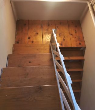 Az emeletre egy kellemes fa lépcsőzet vezet fel.