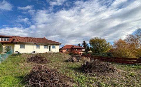 Ebben a meseszép környezetben, egy kiváló elhelyezkedésű, csodaszép panorámás kilátást kínáló területre épült családi ház eladó. A lankás telek 1090 m2, utcafronti szélessége 22,5 m, hossza kb. 52 m. Az ingatlan a szomszéd házzal összeérő, ikres beépítésű, külön helyrajzi számon nyilvántartott önálló családi ház. A lakóház nagy teraszos, a földszinten szélfogó, előtér, amerikai konyhás nappali, 3 szoba, gardrób, fürdő, közlekedő, wc, garázs, terasz helyiségekből és egy külső nyitású tárolóból áll, az ingatlan részben alápincézett.