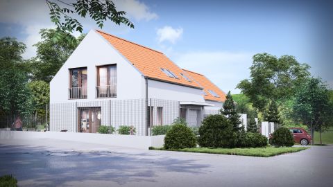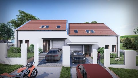 Nemesvámoson eladó egy új építésű, 157 m2-es, nappali + 5 szobás, tégla ikerház rész, a hozzá tartozó, kb. 400 m2-es telekkel.