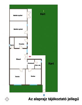 A lakóépület elrendezése praktikus és jól kihasználható: