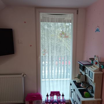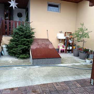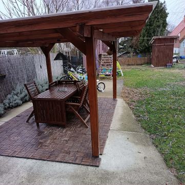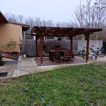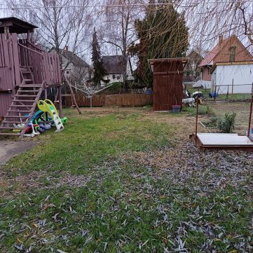 Udvara rendezett ,körbekerített,rajta egy játszótér, fedett kiülő is megtalálható.