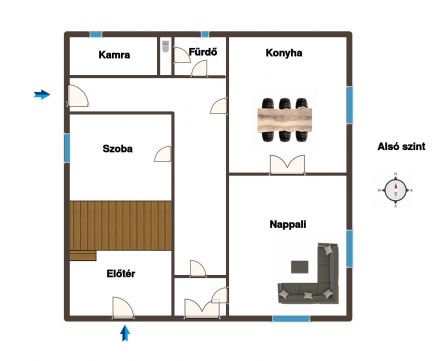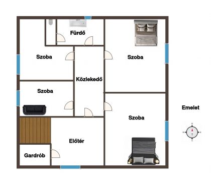 A ház terei világosak és praktikusak. A bútorok nagy része a vételár részét képzi, az új bojler a fenti fürdőszobához megvan, kicserélve még nem lett, amennyiben az új tulaj igényt tart rá megegyezés tárgyát fogja képezni.