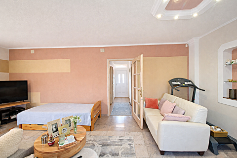 A földszinten található egy tágas, világos nappali közvetlen teraszkapcsolattal, konyha, közlekedők és külön WC.