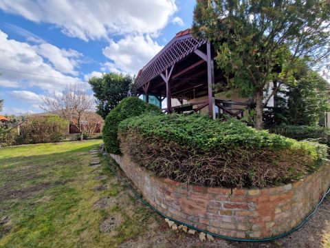 A kertben kialakításra került egy tároló is.