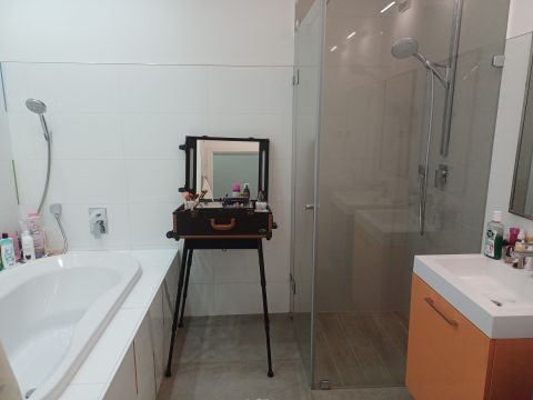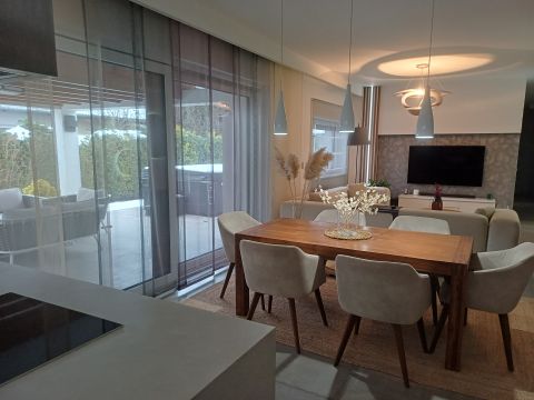 A luxusház tervezésénél kiemelt figyelmet fordítottak a részletekre, így az ingatlan válogatott prémium burkolatokkal, szaniterekkel és igényes anyaghasználattal került kivitelezésre.
