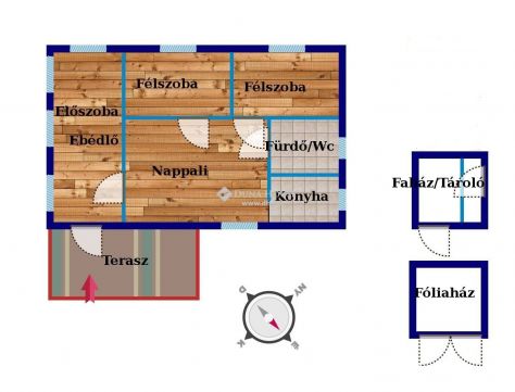 Ezenfelül egy fedett terasz kialakításra került a bejárat előtt, ami 9 nm-es.