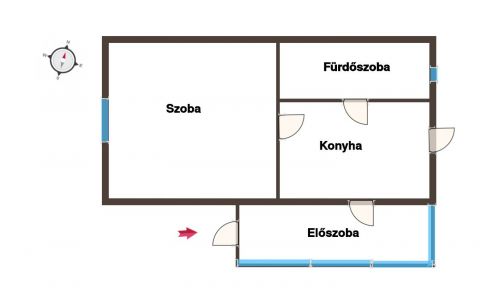 - 1 szoba, konyha, fürdőszoba, előszoba