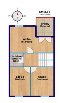 The interior of the house is sunny and exudes a friendly atmosphere. The windows and doors are original, but in good condition. In general, we can say that the property is clean and well-maintained. The house can be renovated as needed, which will achieve a more fashionable overall look and more modern technical content, but the house can also be lived in in its current form, so you can even plan for renovation later.