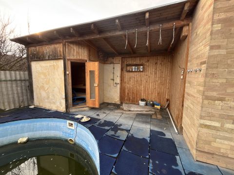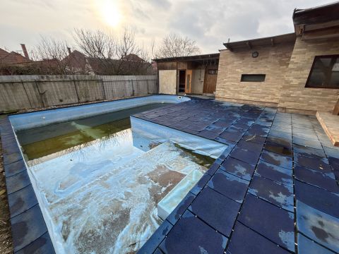 A kertben található egy önálló, 8 m²-es pince, amely kiváló megoldás tárolásra vagy borospincének, illetve egyben ez szolgáltatja a kültéri medence gépházát is. A szabadtéri kikapcsolódást egy nagyméretű úszómedence szolgálja, mellette pedig egy szauna kapott helyet, amely egész évben biztosítja a feltöltődést.