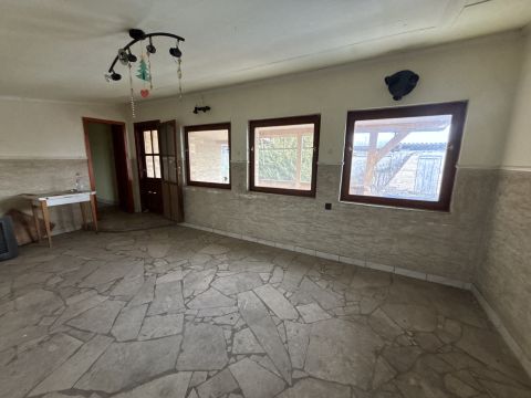 Az épülethez kapcsolódik egy külön bejárattal is rendelkező tágas konyha és étkező, ahonnan egy fedett teraszra tudunk kimenni.