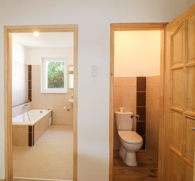 A komfortot gázcirkó fűtés biztosítja radiátoros hőleadókkal, míg a hűtő-fűtő klíma egész évben kellemes hőmérsékletről gondoskodik.