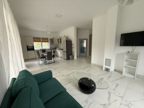elegáns, amerikai konyhás nappali, ahonnan közvetlen kijárat nyílik a hangulatos, fedett teraszra
