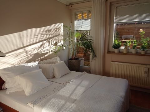 A ház egy csodás, gondozott, öntözőrendszerrel felszerelt kertben (a telek mérete 575 m2) áll, ahol egy impozáns amerikai tulipánfa uralja a teret, mellette pedig számtalan különleges növényfaj teremti meg a természetközeli, békés atmoszférát. Egy igazi kis oázis ahol a napfény, az árnyék és a növények harmóniája minden évszakban különleges hangulatot ad.