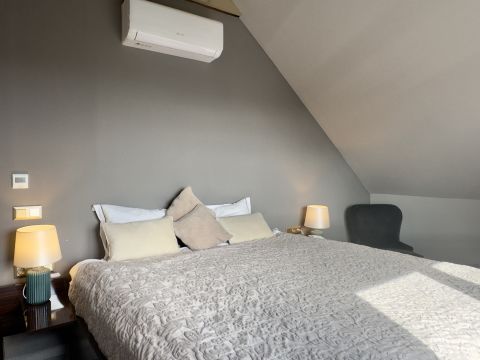 A fűtésről film padlófűtés gondoskodik, illetve klíma, a hűtést mindkét emeleten, szintén klíma "felügyeli".
