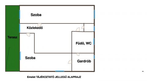 Az emeletre kényelmes lépcső vezet, ahol hálószobák, gardrób, háztartási helyiség és fürdőszoba kapott helyet