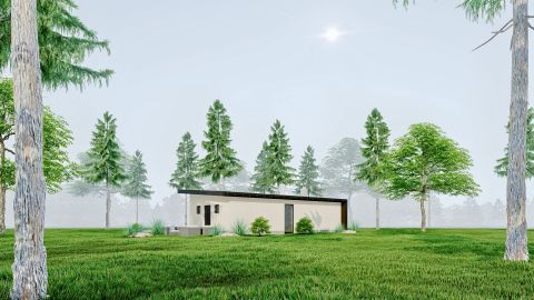 A könnyűszerkezetes nappali +hálós ház, a telek adottságaihoz tökéletesen illeszkedik.