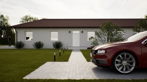 Műszaki tartalom: beton alapon, cserép fedésű tetővel, tégla falazatú (viablokk 30 és 10-es) 10cm eps szigetelés körben.