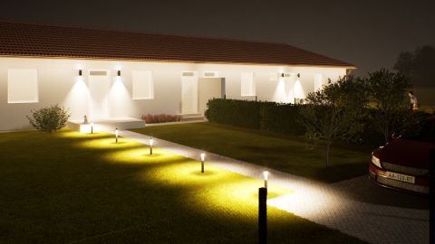Kialakítása: 3 szoba, nappali, konyha+étkező, kamra, háztartási helyiség, tároló, fürdő+wc, előtér, közlekedő, nyitott terasz 19 m2