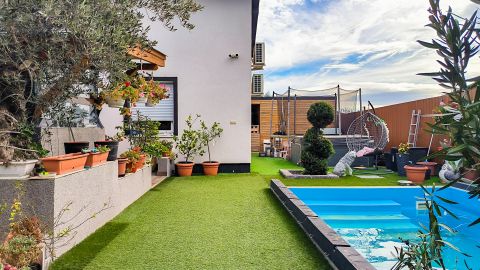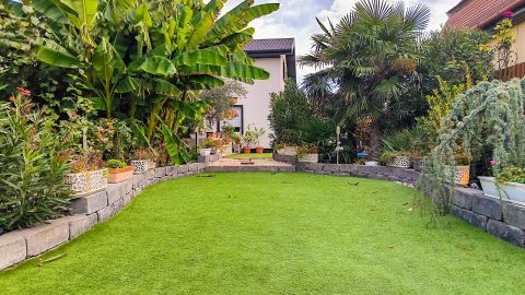A ház mögött fűtött medence és jacuzzi várja a tulajdonost, a gondozott kertet pedig automata öntözőrendszer tartja tökéletes állapotban.