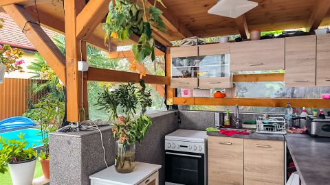 A 40 m²-es fedett terasz a ház természetes meghosszabbítása tökéletes hely a családi vacsorákhoz vagy baráti beszélgetésekhez.