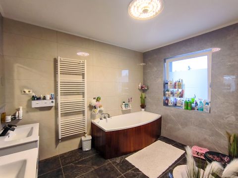 A 7 szoba és 4 fürdőszoba akár többgenerációs együttélést is lehetővé tesz, a ház minden helyiségében külön klímaberendezéssel.