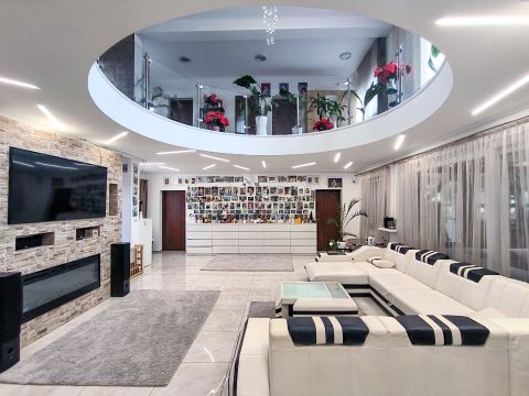 A ház 2020-ban épült, két szinten összesen mintegy 400 négyzetméteren kínál tágas, világos tereket és modern életteret. A 943 m²-es, parkosított telek mediterrán hangulatot áraszt: pálmák, banánfák és kivi bokrok között sétálva az ember könnyen elfelejti, hogy Magyarországon jár. Továbbá 2 db fúrt kút is kialakításra került.