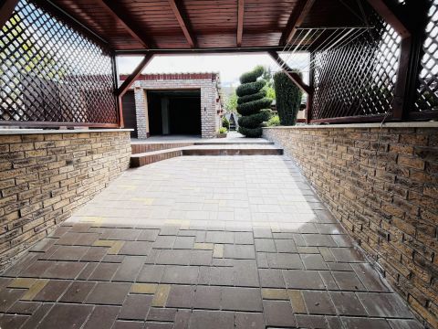 * Térkövezett udvar a garázsig