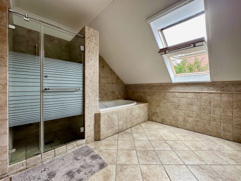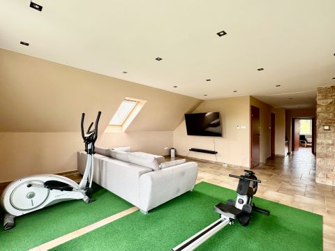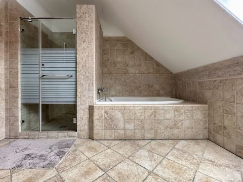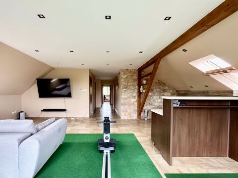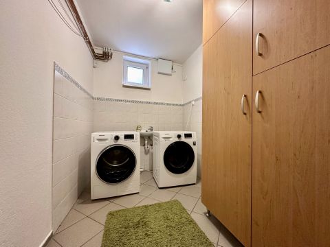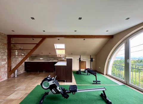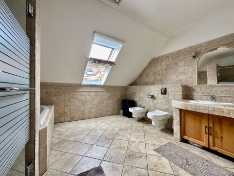 A mindkét fürdőszoba designja különleges figyelmet kapott, ahol a minőségi burkolatok és szaniterek mellett egyedi világítás gondoskodik a relaxáló atmoszféráról. Itt a nap bármely szakában élvezhetjük a kényeztetést és a privát wellness élményét. Fedett teraszon Jakuzzi található. Elektromos autótöltés kiépítve.
