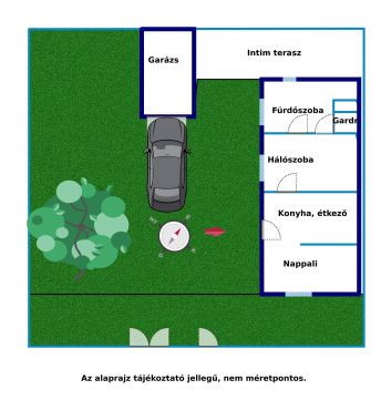 Az ingatlanhoz garázs és szép, gondozott kert is tartozik, amely ideális pihenésre, családi, baráti összejövetelekre.