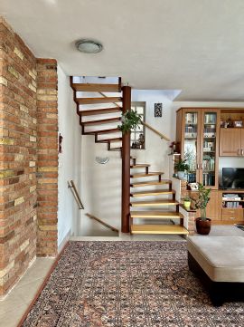 Eladó egy napfényes, 2003-ban épült, emeletes kertes ház Budakeszin, a Nagyszénászug első részén, 639 nm-es telken. Az ápolt kerttel körülvett ingatlan kitűnő elhelyezkedéssel bír, széles, könnyen megközelíthető utcában található. A ház alápincézett, a fűtött, parkettázott, ablakos pince lakóterületnek is kialakítható, így a hasznos alapterület 152 m². A pince előteréből nyílik a kazánhelyiség, egy tágas kamra, valamint egy elkülönült gardrób-tároló.