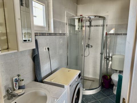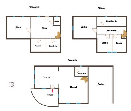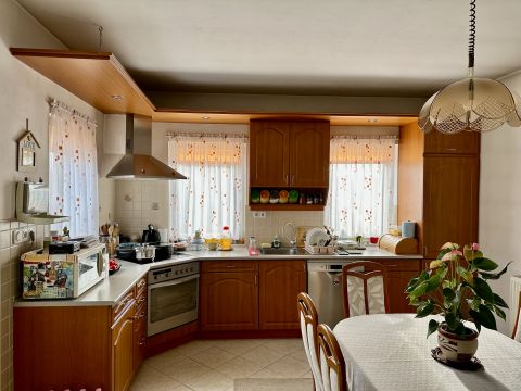 A földszintet a konyha-étkező és nappali, valamint egy zuhanyzós fürdőszoba alkotja, míg az emeleten három hálószoba és egy kádas, nagyméretű fürdőszoba szolgálja a kényelmet. Az ingatlan 5 cm-es Terralit hőszigeteléssel van ellátva a jobb energiahatékonyság érdekében, a fűtést pedig vegyes tüzelésű kazán biztosítja. A kert öntözésére egy nagyméretű ciszterna áll rendelkezésre, zárt emésztővel együtt. A ház mellé épült fedett garázsbeálló, mögötte egy műhely és zárt fatároló is található.