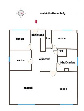 Modernizálási lehetőség: Egy kisebb átalakítással egy hatalmas, közel 40 nm-es amerikai konyhás nappali és 3 külön nyíló hálószoba hozható létre.